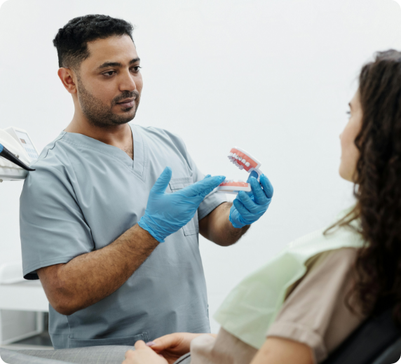 Explore personalized denture solutions at Takra Dental, where we specialize in comprehensive denture services to restore your smile and confidence. Our expert team offers a range of prosthodontic treatments, including crown installation, bridge placement, and dental prosthetics tailored to your unique needs. Whether you require removable dentures or fixed dental bridges, we provide expert care to ensure optimal fit, function, and aesthetics. Our skilled prosthodontists are experienced in dental crown restoration and bridge procedures, utilizing advanced techniques and materials to achieve durable and natural-looking results.